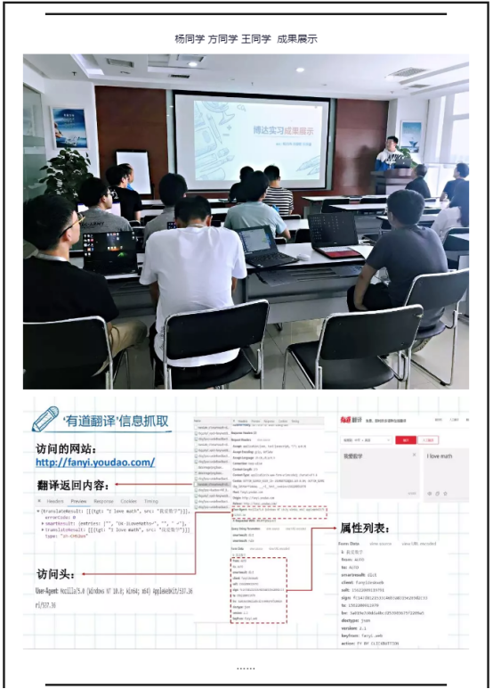 博达软件结合大数据及人工智能研发对实习生展开项目实训,组织学生学习人工智能、深度学习、网络爬虫、自然语言处理等基本知识,以企业真实的项目环境为导向,让学生体验完整的项目过程,帮助学生将理论知识与实践相结合。