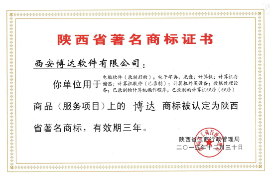 近日公司收获喜报,“博达”商标通过陕西省工商行政管理局裁定,荣获陕西省著名商标权威认定。