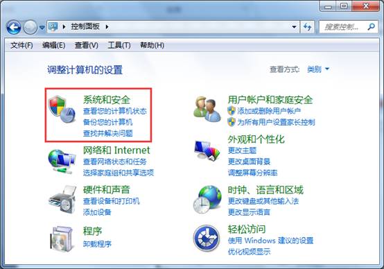 1、在开始菜单中,单击“控制面板->系统和安全”。